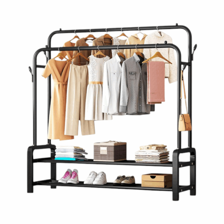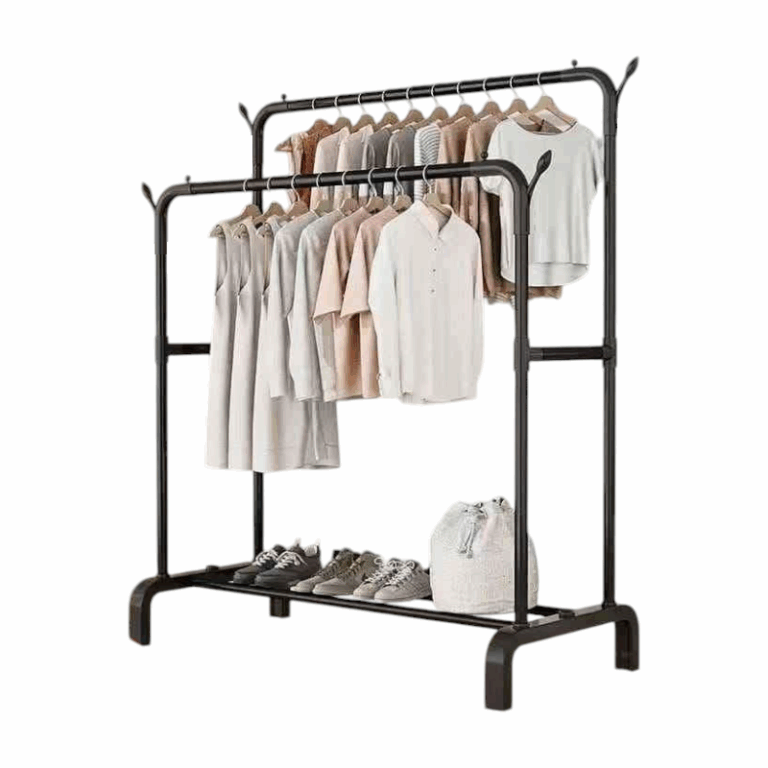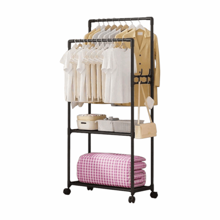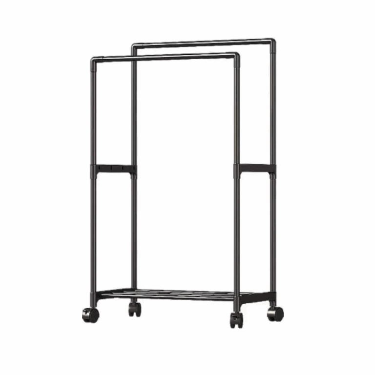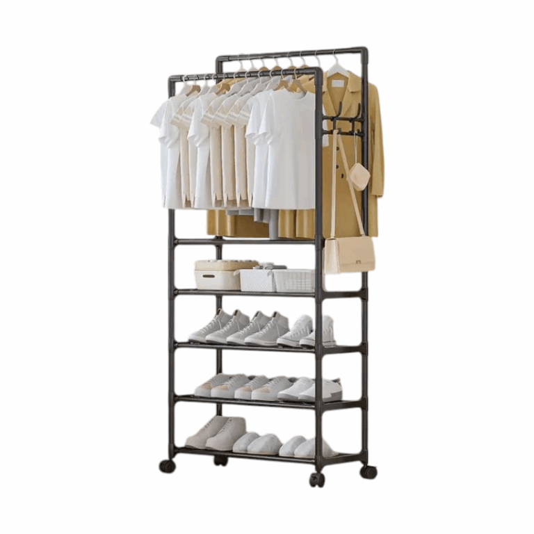Τροχήλατη κρεμάστρα δαπέδου με ράφια παπουτσιών – YP610 – 522633 – Black – GoodFlix