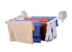 Απλώστρα ρούχων αλουμινίου με ισχυρές βεντούζες τοποθέτησης και πρακτικό σχεδιασμό. Διαθέτει τηλεσκοπικούς βραχίονες με ρυθμιζόμενο μήκος από 40 έως 70cm, ειδικά γαντζάκια για κρέμασμα μικρών ρούχων και είναι πτυσσόμενη για εξοικονόμηση χώρου.