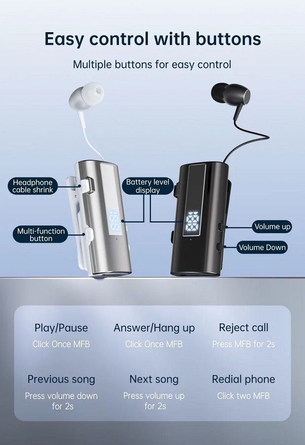 Ακουστικό Handsfree Bluetooth με σχεδιασμό clip-on-collar και επεκτεινόμενο καλώδιο.