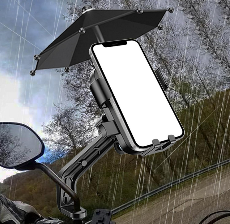 Βάση στήριξης smartphone ποδηλάτου/μοτοσυκλέτας με ομπρέλα σκίασης και κεφαλή ρυθμιζόμενης κλίσης, για τοποθέτηση στον βραχίονα του καθρέπτη.
