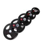 Δίσκος-πιάτο βάρους γυμναστικής με ελαστική αντιολισθητική επένδυση και εργονομικές λαβές, ιδανικό για χρήση πάνω σε μπάρα άρσης ή ως ελεύθερο βάρος σε πολλαπλές ασκήσεις.