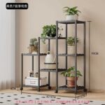 Διακοσμητική ραφιέρα δαπέδου με 7 τετράγωνα ράφια, συναρμολογούμενη, με μεταλλικό σκελετό και πλαστικά ανθεκτικά ράφια, ιδανική για την οργάνωση φυτών και την διακόσμηση χώρου.