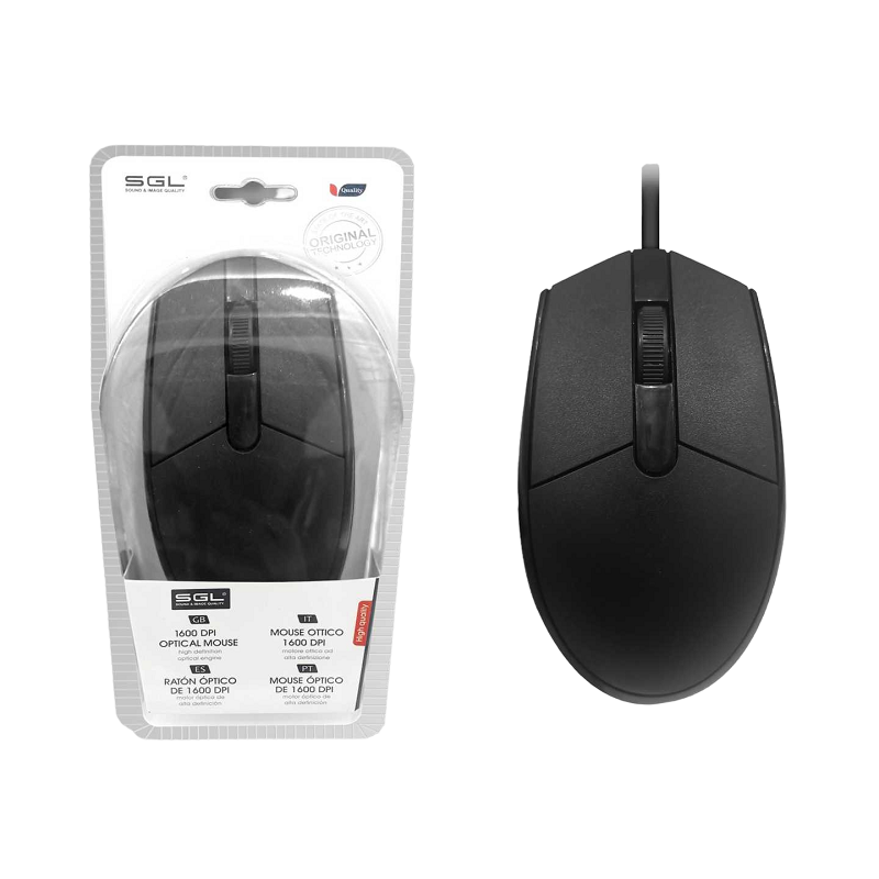 Ενσύρματο ποντίκι Η/Υ της SGL, οπτικό, με εργονομικό design και υψηλές αποδόσεις, ιδανικό για καθημερινή χρήση. Max 1600 DPI. Αριθμός πλήκτρων: 3. Μήκος καλωδίου: 1.2m.