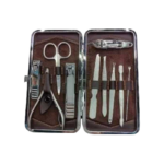 Πλήρες σετ περιποίησης νυχιών σε θήκη, κατάλληλο για προσωπική ή επαγγελματική χρήση.