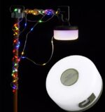 Επαναφορτιζόμενη λάμπα LED σετ με γιρλάντα φωτισμού που συνδέεται και τροφοδοτείται από την λάμπα, με πολύχρωμο φωτισμό RGB. Ιδανική για διακόσμηση εξωτερικών χώρων ή πρακτική χρήση στο κάμπινγκ και τις υπαίθριες δραστηριότητες σας. Η λάμπα διαθέτει αυτόνομο φωτισμό και η γιρλάντα μαζεύεται σε ρολό εντός της λάμπας προσδίδοντας έξτρα εφέ.