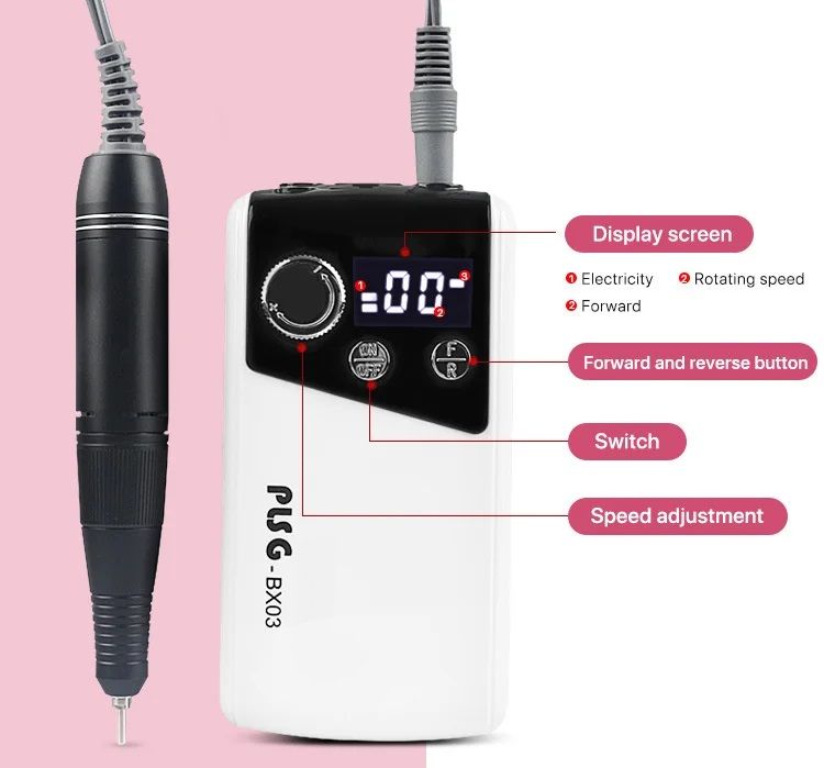 Επαγγελματικός, επαναφορτιζόμενος τροχός μανικιούρ-πεντικιούρ με βάση στήριξης για το στυλό. Διαθέτει ρυθμιζόμενη ταχύτητα, λειτουργία μειωμένου θορύβου και δονήσεων και εργονομικό σχεδιασμό για εύκολη και άνετη χρήση.
