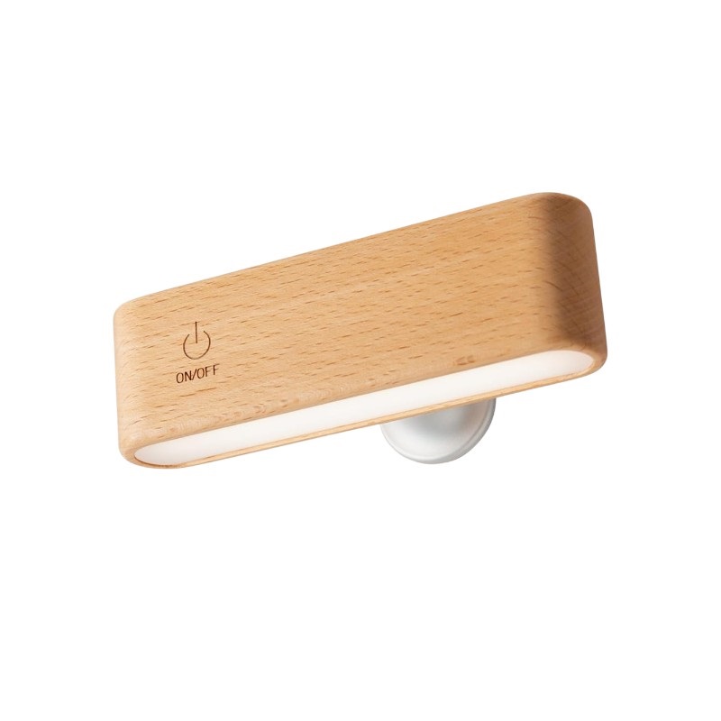 Επιτοίχιο διακοσμητικό φωτιστικό LED σε μοντέρνο σχεδιασμό με ξύλινο εφέ, επαναφορτιζόμενο, με μέγιστη αυτονομία μπαταρίας έως 10 ώρες.