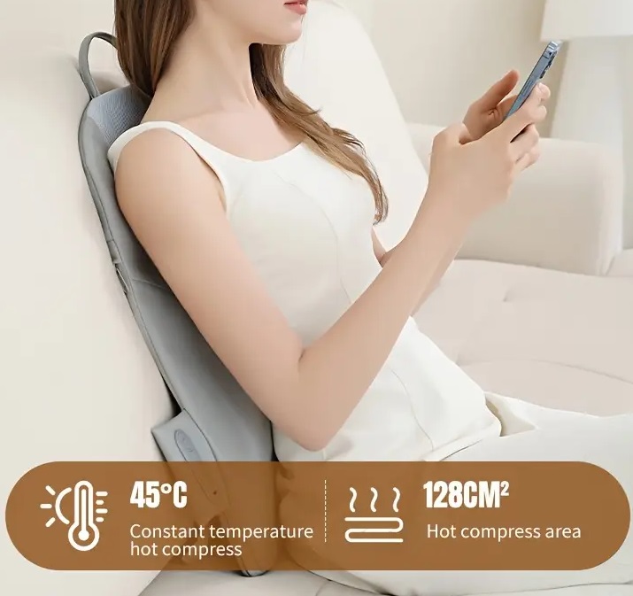 Η συσκευή μασάζ χρησιμοποιεί μια αποτελεσματική μέθοδο για την ανακούφιση των πόνων της μέσης και της πλάτης, που προκαλούνται από την καθημερινή κούραση ή την καθιστική στάση. Η λειτουργία της συσκευής εστιάζει στο βαθύ ζύμωμα, δίνοντας προσοχή στα σημεία πίεσης και στοχεύοντας στη χαλάρωση και την ανακούφιση από τον πόνο. Προσφέρει βαθιά χαλάρωση στους μύες με μασάζ διπλής κατεύθυνσης, αυξάνοντας τη κυκλοφορία και ροή του αίματος και μειώνοντας τη μυϊκή δυσκαμψία. Είναι κατασκευασμένη από αναπνεύσιμο ύφασμα, που προάγει τη διείσδυση στη θερμότητα και μεγιστοποιεί το αποτέλεσμα του μασάζ.