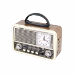 Φορητό ραδιόφωνο σε πανέμορφο Retro σχεδιασμό για τους λάτρεις του Vintage στυλ με ενσωματωμένο αναλογικό ρολόι. Προσφέρει υψηλή ποιότητα ήχου χάρη στα στερεοφωνικά ηχεία του ενώ η πτυσσόμενη κεραία του, παρέχει σταθερό ραδιοφωνικό σήμα. Μπορείτε να πάρετε την αγαπημένη σας μουσική παντού, καθώς είναι πρακτικό και εύκολο στη μεταφορά.