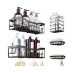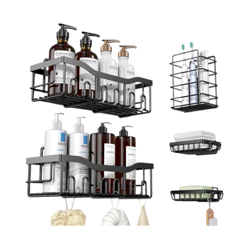 Σετ επιτοίχια ράφια οργάνωσης μπάνιου, με 2 ράφια, 2 θήκες σαπουνιού/σφουγγαριού και 1 θήκη για οδοντόβουρτσες.