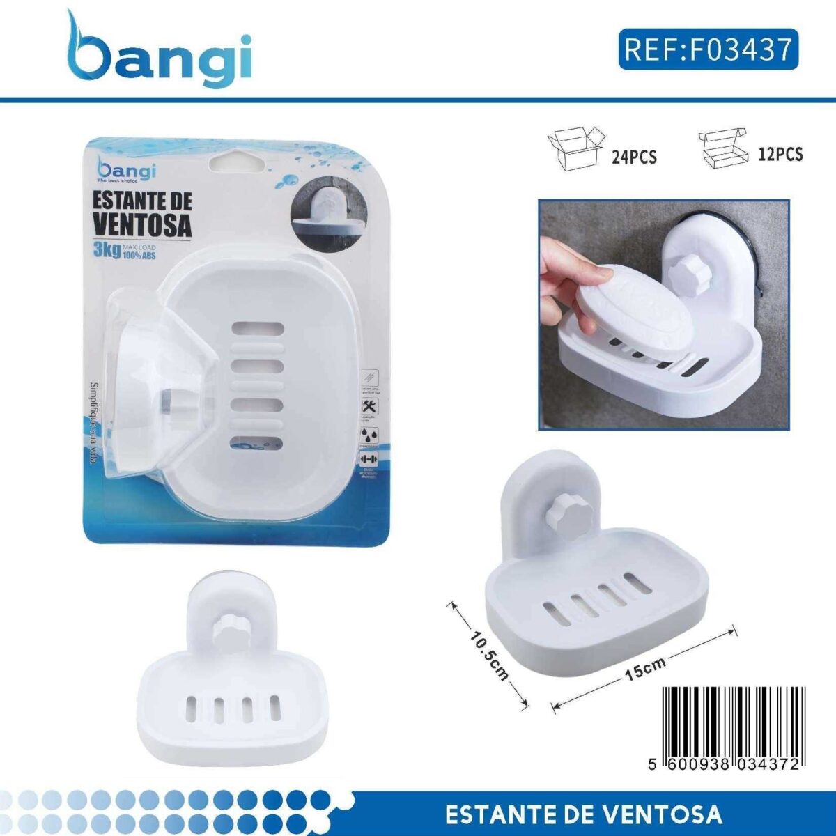 Επιτοίχια σαπουνοθήκη μπάνιου με βεντούζα – 03437 5600938034372
