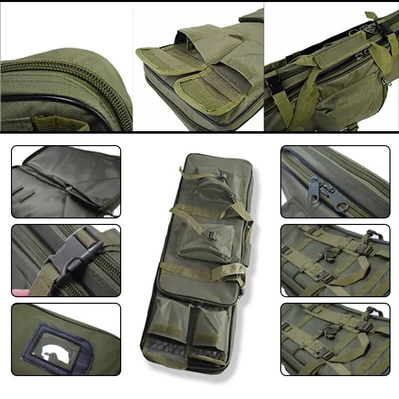 Επιχειρησιακή τσάντα/Θήκη όπλου κατασκευασμένη από έξτρα ενισχυμένο NYLON Oxford 600D υφάσμα με προστατευτικό σφουγγάρι στο εσωτερικό και βοηθητικές θήκες. Διαθέτει: Εσωτερική θήκη με μαλακά προστατευτικά και διπλό φερμουάρ, Χειρολαβές μεταφοράς με προστατευτικό κάλυμμα, Λουριά σακιδίου πλάτης με μαξιλαράκια, 5 εξωτερικες θήκες. Διαστάσεις: 95 x 28 x 12cm.