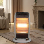 Ηλεκτρική θερμάστρα αλογόνου, που προσφέρει άμεση και αποτελεσματική θέρμανση, με ρυθμιζόμενα επίπεδα θερμότητας απόδοσης έως και 1200W, λειτουργία περιστροφής και δυνατότητα ασφαλούς και εύκολης μετακίνησης.