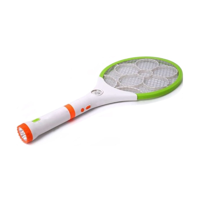 Επαναφορτιζόμενη μεγάλη ηλεκτρική ρακέτα, με τριπλό ηλεκτροφόρο δίχτυ τάσης 2500V και επαναφορτιζόμενη μπαταρία 4.2V/400mAh.