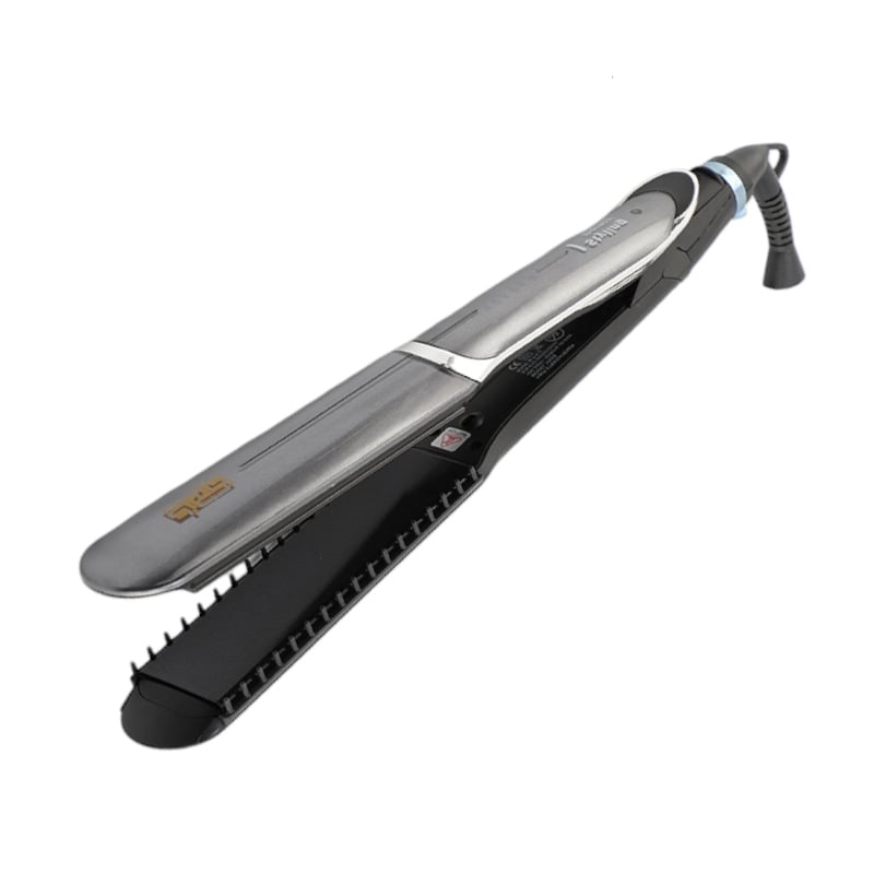 Iσιωτική μαλλιών DSP με κεραμικές πλάκες και ενσωματωμένη χτένα για εύκολο ίσιωμα χωρίς κόμπους. Με τεχνολογία τουρμαλίνης, που προστατεύει τα μαλλιά σας από την φθορά της θερμότητας και το φριζάρισμα, προσφέροντας λείο και λαμπερό αποτέλεσμα.