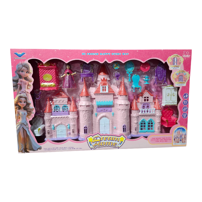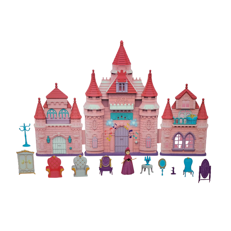 Κουκλόσπιτο-κάστρο πριγκίπισσας με πλήρες σετ αξεσουάρ και φιγούρες.