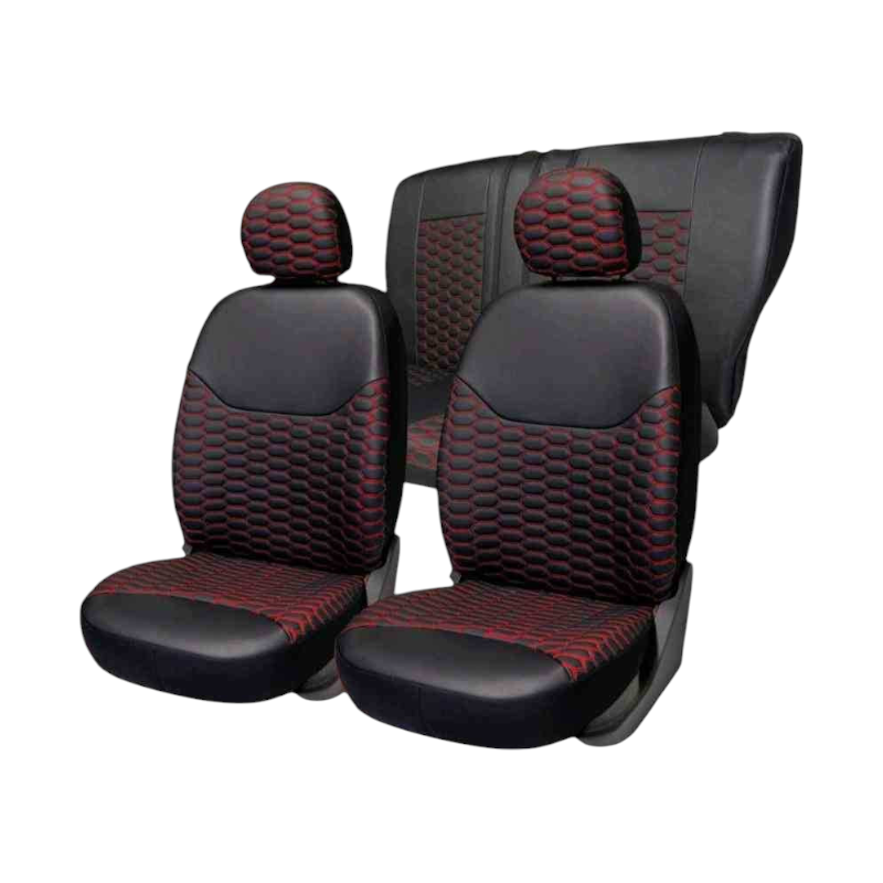 Universal καλύμματα αυτοκινήτου, από υψηλής ποιότητας δερματίνη που τοποθετείται και καθαρίζεται εύκολα. Αποτελείται από υψηλής ανθεκτικότητας υλικά και λεπτό εσωτερικό σφουγγάρι με ειδική ανατομική σχεδίαση. Περιλαμβάνονται 2 καλύμματα για τα 2 μπροστινά καθίσματα, 2 καλύμματα για τα μαξιλάρια κεφαλής και 1 κάλυμμα πίσω καθίσματος. Ευέλικτος και κομψός σχεδιασμός που ταιριάζει σε όλα τα αυτοκίνητα. Υψηλή αντοχή στη φθορά. Εύκολη τοποθέτηση με λάστιχο.