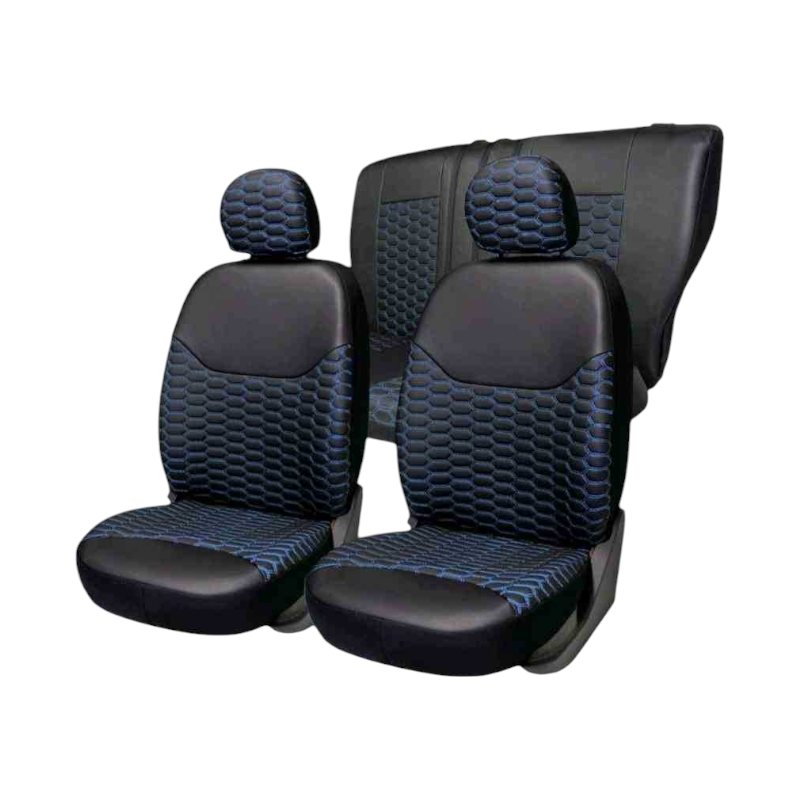 Universal καλύμματα αυτοκινήτου, από υψηλής ποιότητας δερματίνη που τοποθετείται και καθαρίζεται εύκολα. Αποτελείται από υψηλής ανθεκτικότητας υλικά και λεπτό εσωτερικό σφουγγάρι με ειδική ανατομική σχεδίαση. Περιλαμβάνονται 2 καλύμματα για τα 2 μπροστινά καθίσματα, 2 καλύμματα για τα μαξιλάρια κεφαλής και 1 κάλυμμα πίσω καθίσματος. Ευέλικτος και κομψός σχεδιασμός που ταιριάζει σε όλα τα αυτοκίνητα. Υψηλή αντοχή στη φθορά. Εύκολη τοποθέτηση με λάστιχο.