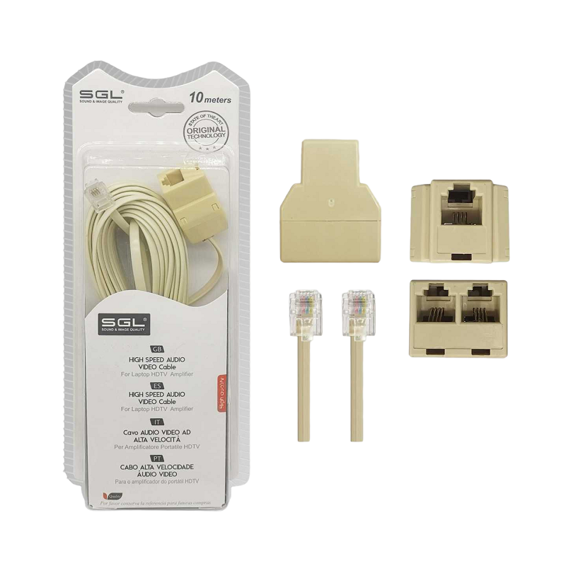 Καλώδιο γραμμής τηλεφώνου με διακλαδωτή – 6P4C1-2 – 10m – 097084 – GoodFlix