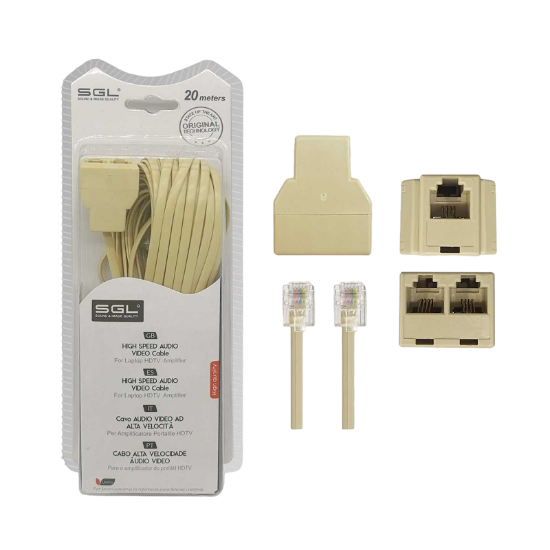 Καλώδιο γραμμής τηλεφώνου με διακλαδωτή – 6P4C1-2 – 20m – 097107 8222000097107