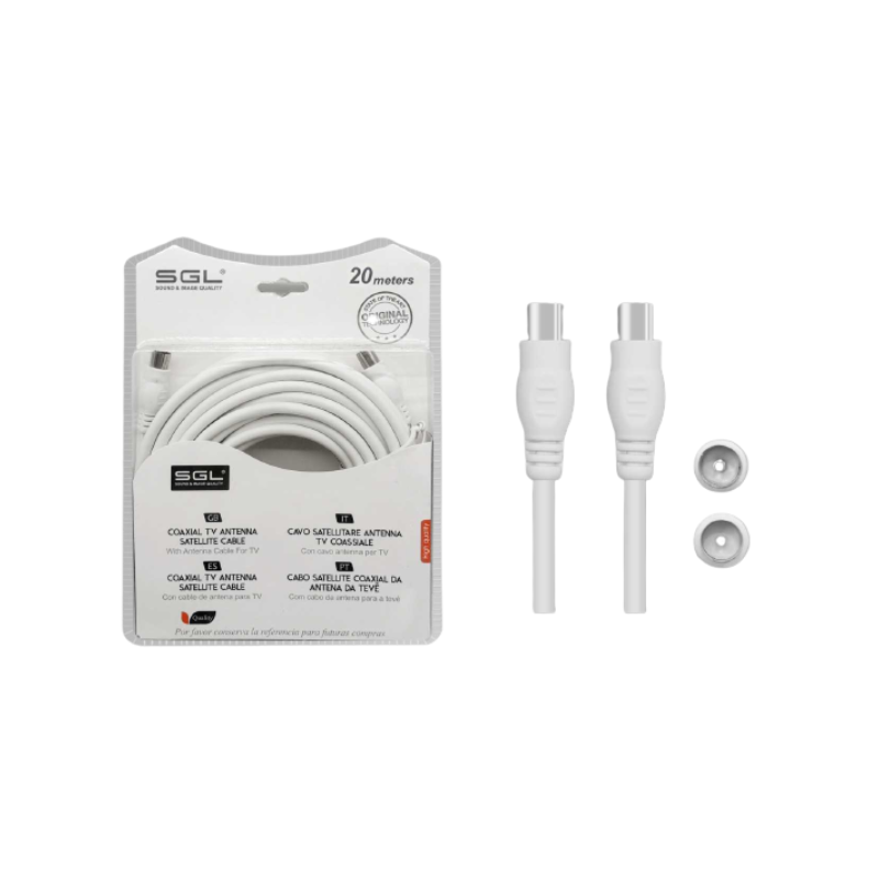 Καλώδιο κεραίας τηλεόρασης Male/Female, μήκους 20m, λευκό.