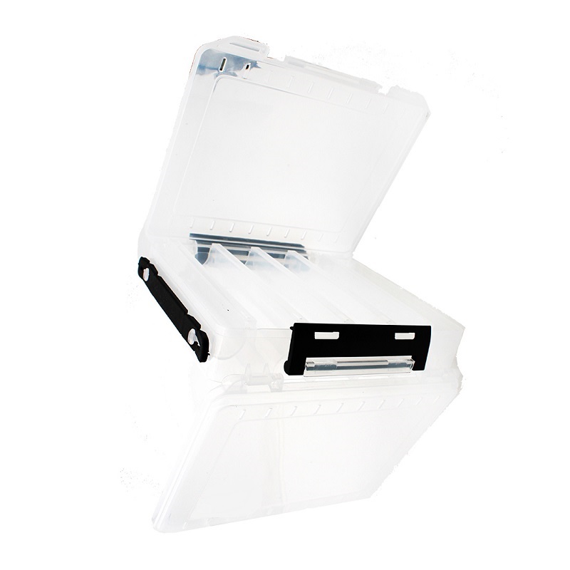 Κασετίνα αποθήκευσης αξεσουάρ ψαρέματος διπλής όψης, πλαστική με πολλαπλές θήκες και διαχωριστικά.