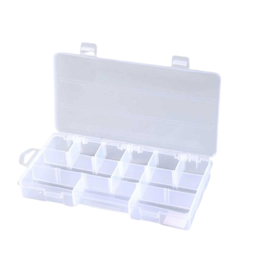 Πλαστικό κουτί-κασετίνα, ιδανικό για την αποθήκευση και μεταφορά των αξεσουάρ αλιείας σας, με πολλαπλές θήκες και διαχωριστικά.