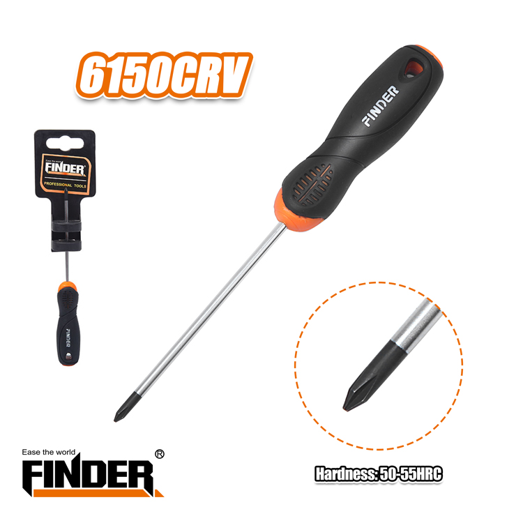 Κατσαβίδι με σταυρό κεφαλή (+), φτιαγμένο από Cr-V ατσάλι και λαβή τύπου PP+TPR.