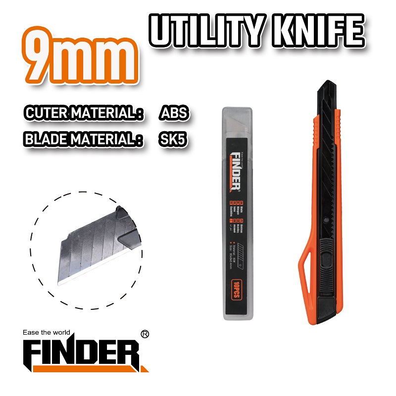 Κοπίδι-Φαλτσέτα 9mm, τη νέας σειράς Finder Max Series, με ατσάλινη λεπίδα και εργονομικό σχεδιασμό με κλείδωμα ασφαλείας.