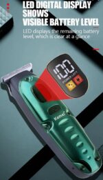 Χαρακτηριστικά: Ισχύς: 5W, Ψηφιακή οθόνη LED, 2 ταχύτητες, Επαναφορτιζόμενη μπαταρία λιθίου 600mAh, Χρόνος φόρτισης: 2 ώρες, Χρόνος λειτουργίας: 150 λεπτά, 3 χτενάκια για μήκη κοπής 1/2/3 mm, Λεπίδα από ανοξείδωτο ατσάλι πλάτους 40mm, Διαστάσεις: 14 x 4.2 cm.