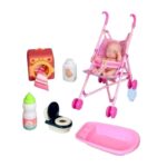 Κούκλα μωρό με σετ μπάνιου και καροτσάκι – 669-609B – 215565 6920250215565