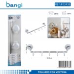 Κρεμάστρα πετσέτας μπάνιου με άγκιστρα κρεμάσματος ρυθμιζόμενης θέσης, με μεταλλική ράγα inox και πλαστικές βάσεις υψηλής ανθεκτικότητας. Εύκολη τοποθέτηση με ισχυρές βεντούζες, χωρίς να απαιτείται βίδωμα.