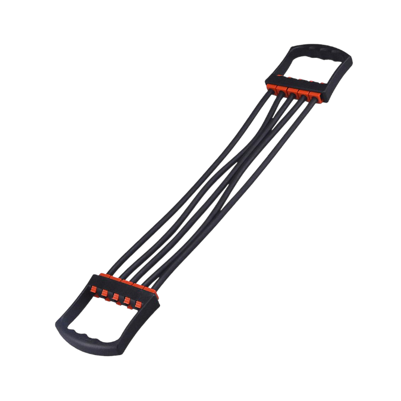 Όργανο με λάστιχα για εκγύμναση στήθους/πλάτης, με 5 αφαιρούμενα λάστιχα για την ρύθμιση της αντίστασης που επιθυμείτε. Με εργονομικές λαβές, προσφέρει δυνατότητα πολλαπλών ασκήσεων και ενδυναμώνει αποτελεσμάτικα στήθος, πλάτη και χέρια.