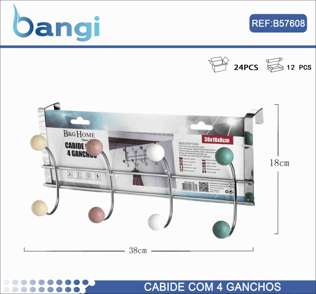Μεταλλική κρεμάστρα πόρτας 4 θέσεων – 57608 5600910576081