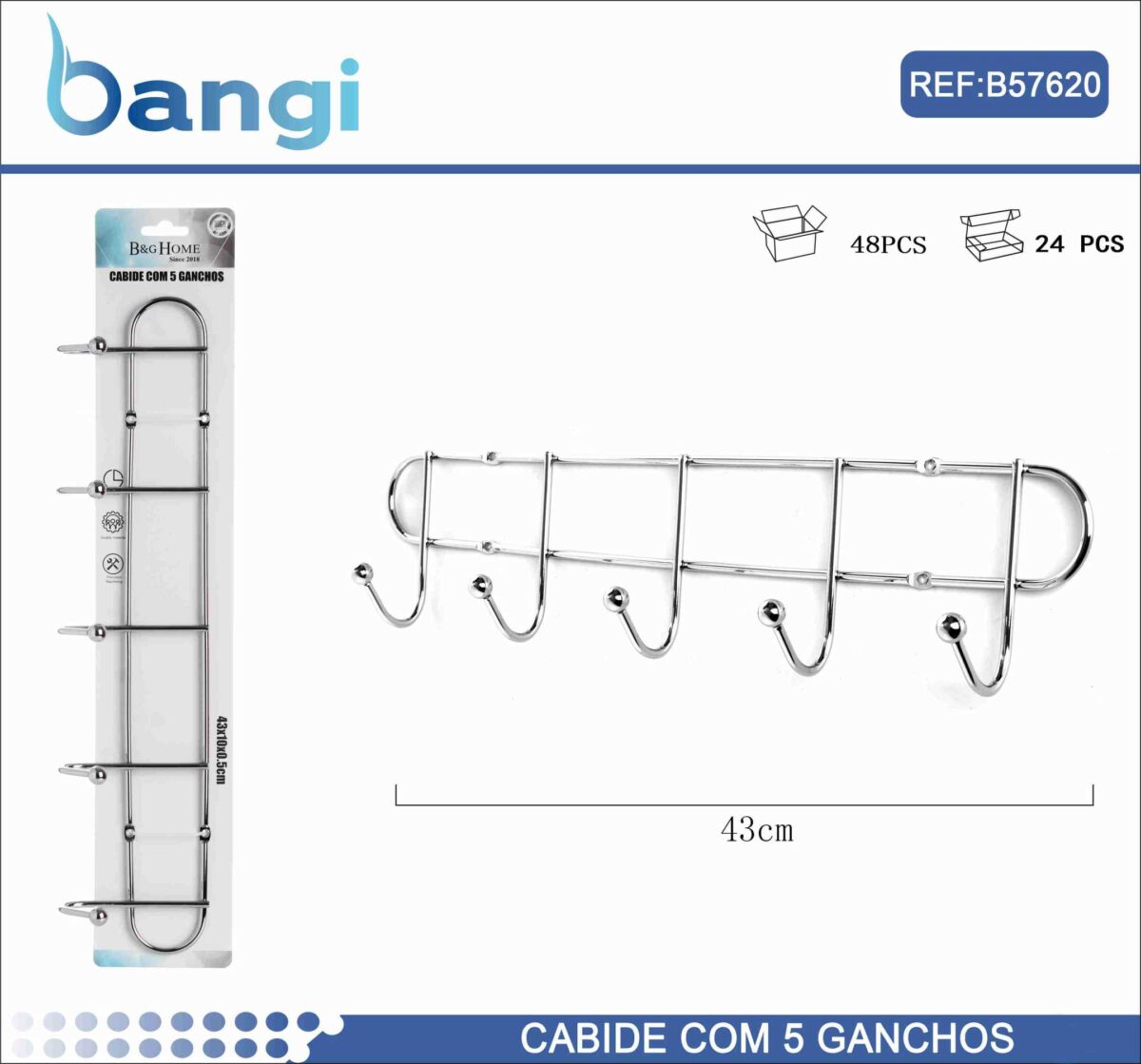 Μεταλλική κρεμάστρα τοίχου 5 θέσεων – 26403 5600938264038