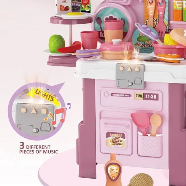 Παιδική κουζίνα με πάγκο, με πλήρες σετ αξεσουάρ μαγειρικής και φωτισμό.
