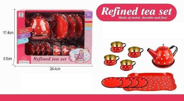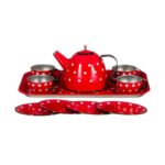 Παιδικό σετ τσαγιού με δίσκο, τσαγιέρα και φλυτζανάκια με πιατάκια, πλήρως κατασκευασμένα από Inox, σε πανέμορφο σχεδιασμό, με υπέροχα ζωγραφιστά σχέδια.