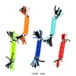 Παιχνίδι σκύλου μασητικό από ανθεκτικό, ελαστικό, μη τοξικό TPR, με υφασμάτινο πλεκτό σχοινί με κόμπους, συνολικού μήκους 24cm. Φροντίζει την υγεία τον δοντιών του σκύλου σας διατηρώντας τα καθαρά και μειώνοντας την πέτρα, ενώ παράλληλα διασκεδάζει παίζοντας.