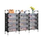 Παπουτσοθήκη δαπέδου με ράφι, με μεταλλικό σκελετό και συρταρωτές θήκες με λεπτή, πλαστική, εύκαμπτη πρόσοψη,