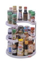 Ραφιέρα οργάνωσης κουζίνας ιδανική για μπαχαρικά και τρόφιμα μικρών συσκευασιών, περιστρεφόμενη 360°, με 3 επίπεδα και πρακτικό σχεδιασμό για εύκολη καθημερινή χρήση.