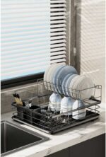 Πιατοθήκη αποστράγγισης μεταλλική, διώροφη με θήκες μαχαιροπίρουνων.