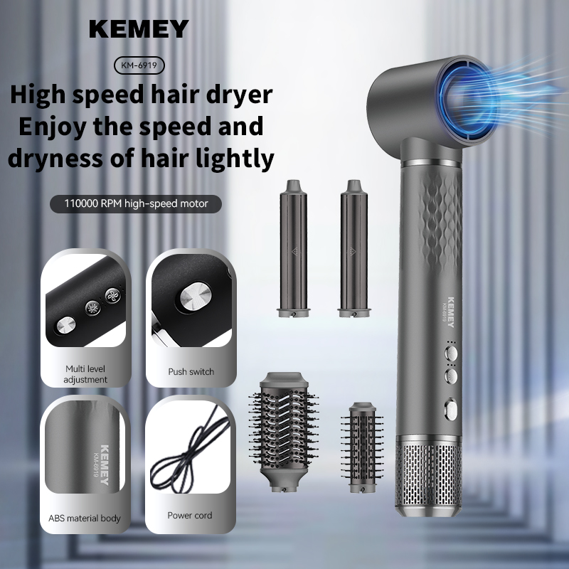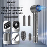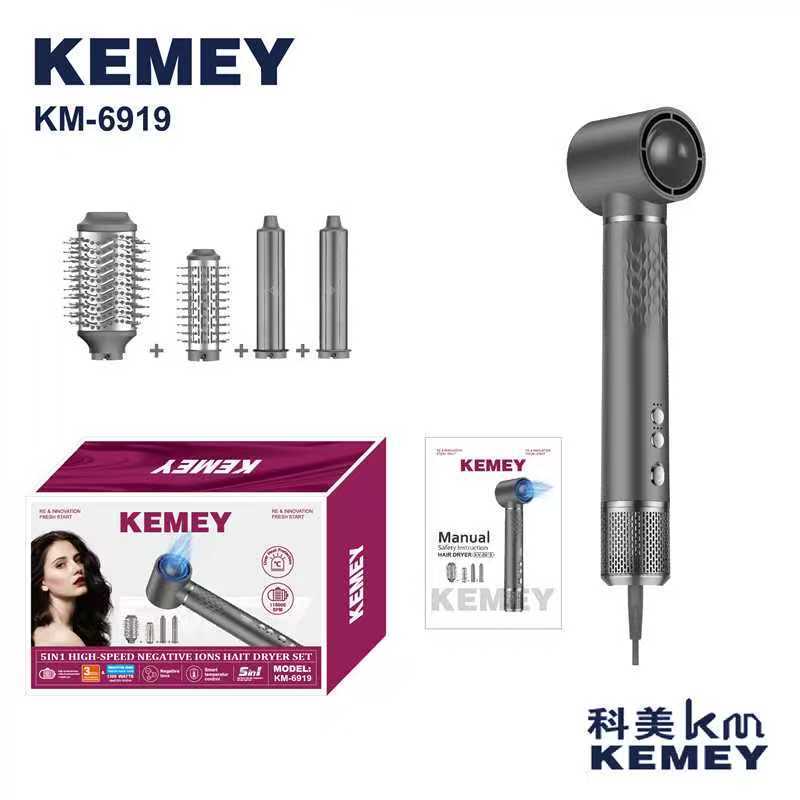 Ηλεκτρική βούρτσα μαλλιών της Kemei 5 σε 1, που στεγνώνει, φορμάρει, ισιώνει και δημιουργεί ελαφριές μπούκλες στα μαλλιά σας σε ελάχιστο χρόνο με τη δύναμη του αέρα και με την τεχνολογία αρνητικών ιόντων, προστατεύοντάς τα από τη φθορά της θερμότητας, αφήνοντας ένα λείο, λαμπερό αποτέλεσμα.