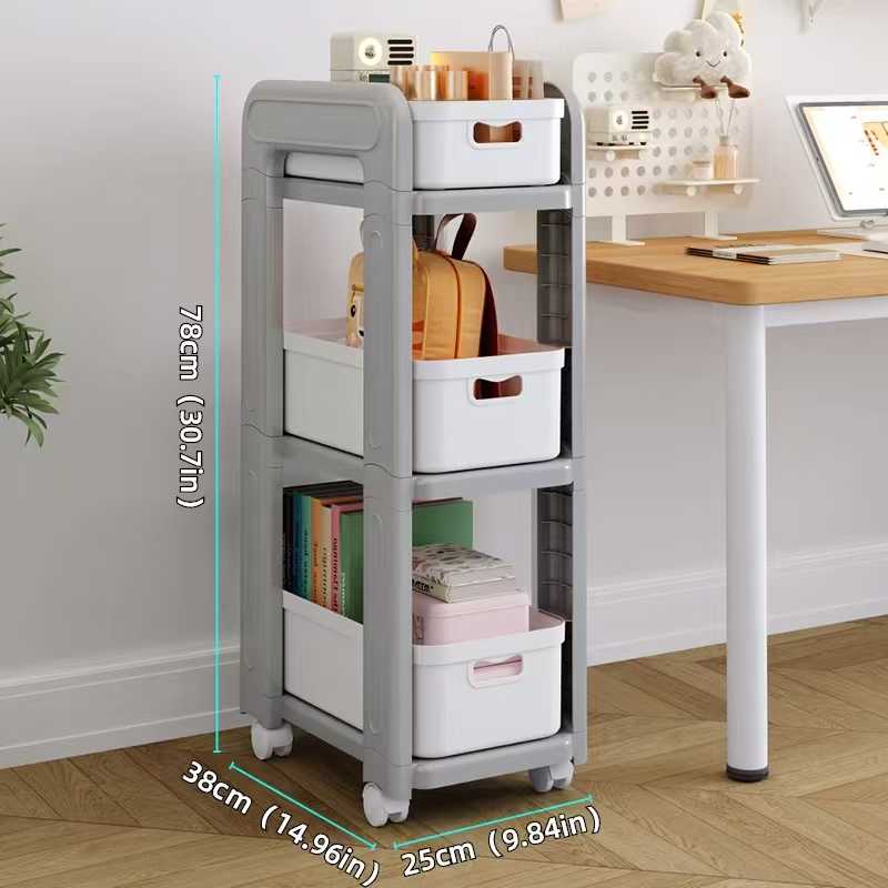 Βοηθητική πλαστική ραφιέρα 3 επιπέδων, με αφαιρούμενα κουτιά αποθήκευσης και ρόδες για εύκολη μετακίνηση,