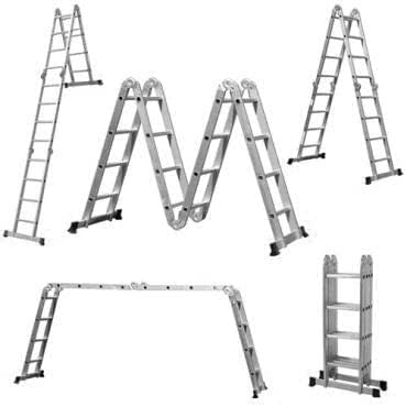 Πτυσσόμενη πολυμορφική σκάλα με στιβαρή κατασκευή αλουμινίου, και εύκολη αποθήκευση. Συνολικό μήκος: 4.7m.