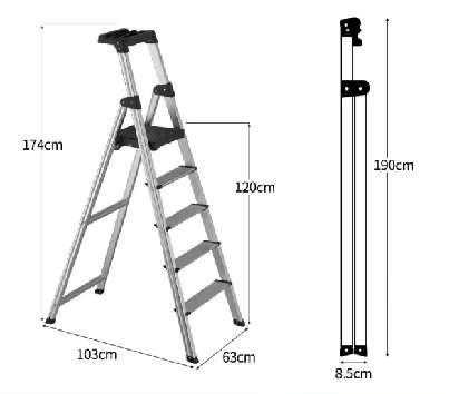 Πτυσσόμενη σκάλα 5 σκαλιών, με στιβαρή κατασκευή αλουμινίου, και εύκολη αποθήκευση.