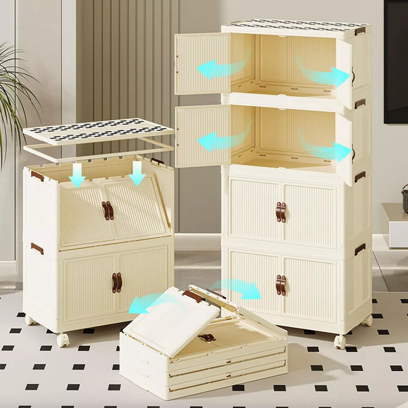 Πτυσσόμενη ντουλάπα αποθήκευσης 5 επιπέδων, πλαστική, με ρόδες για εύκολη μετακίνηση. Οι όροφοι αποσπώνται ώστε να μπορείτε να χρησιμοποιήσετε όσα μέρη χρειάζεστε, ενώ είναι πλήρως πτυσσόμενη για εύκολη αποθήκευση όταν δεν χρησιμοποιείται. Διαστάσεις: 115x48x24cm.
