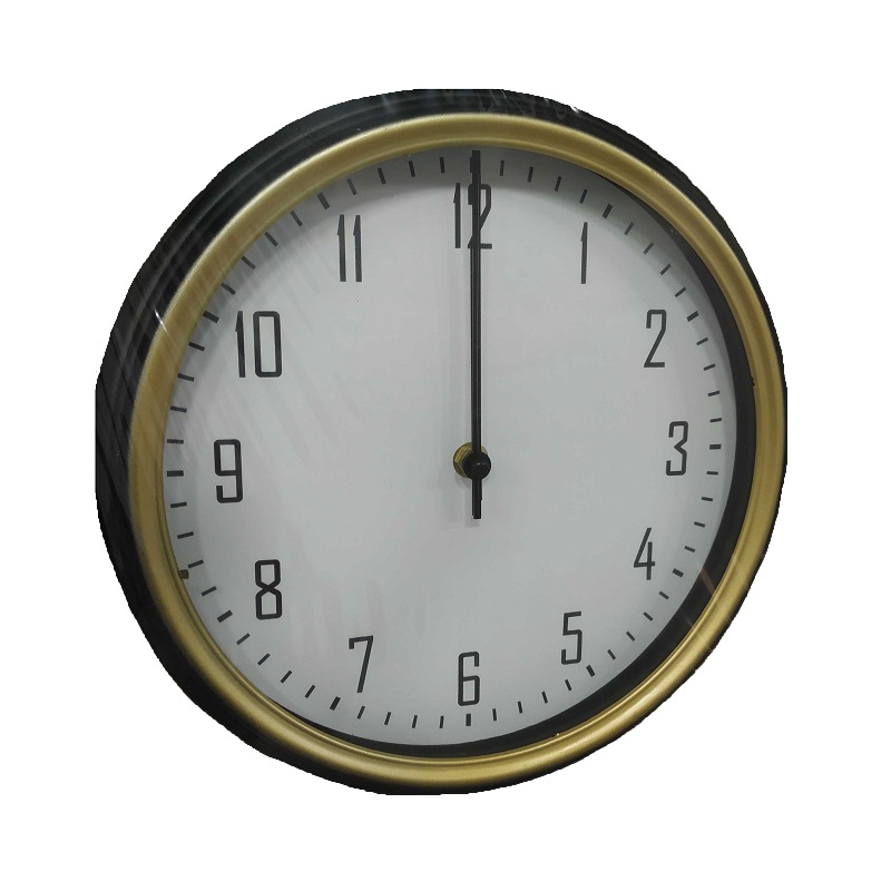Ρολόι τοίχου σε minimal μοντέρνο σχεδιασμό που μπορεί να ταιριάξει σε κάθε χώρο. Υλικό: πλαστικό, Διάμετρος: 27cm.Χρώμα: Μαύρο/Χρυσό.