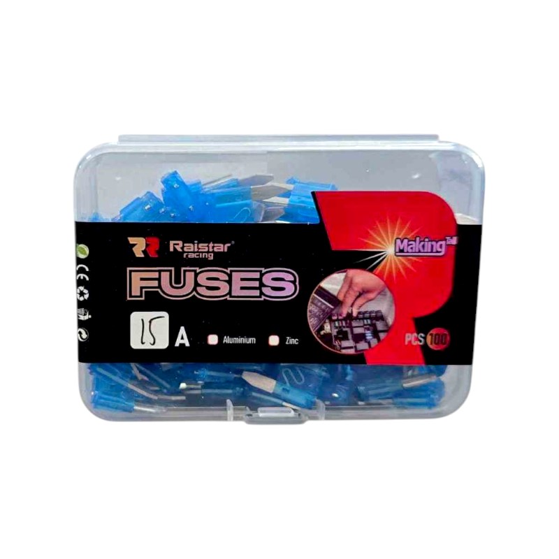 Σετ ασφάλειες αυτοκινήτου 15A, συσκευασία 100 τεμαχίων.