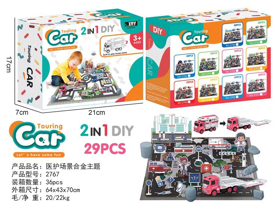 Σετ θεματικό σκηνικό αυτοκινητόδρομου πόλης με πολλά αξεσουάρ.