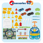 Σετ πάγκος-αυτοκινητόδρομος City Racing που μετατρέπεται πολύ εύκολα σε βαλιτσάκι τρόλεϋ με χειρολαβή για εύκολη μεταφορά. Περιλαμβάνει 4 αυτοκινητάκια και πλήρες σετ με σήματα και αξεσουάρ πόλης, για μια ολοκληρωμένη εμπειρία παιχνιδιού για όλη την οικογένεια.